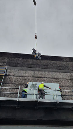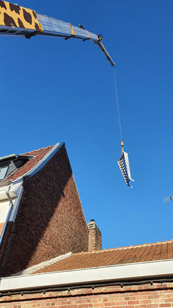 Acheminement de matériel isolant, sécurité, palettes étanchéités, big bag à une Hauteur de 25m